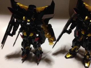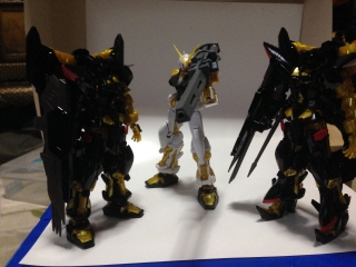 と3体並んだけど、アストレイのファンとしてはゴールドフレームをもう1体並べたい、